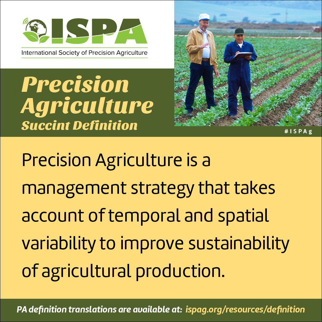The International Society of Precision Agriculture (ISPA) is a scientific organization developing solutions to feed the world and improve the quality of life with new technologies. ISPA has developed the Precision Agriculture Definition, available in over fifteen languages.
