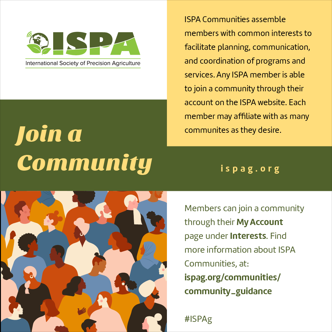 The International Society of Precision Agriculture (ISPA) is a scientific organization developing solutions to feed the world and improve the quality of life with new technologies. ISPA has developed the Precision Agriculture Definition, available in over fifteen languages.