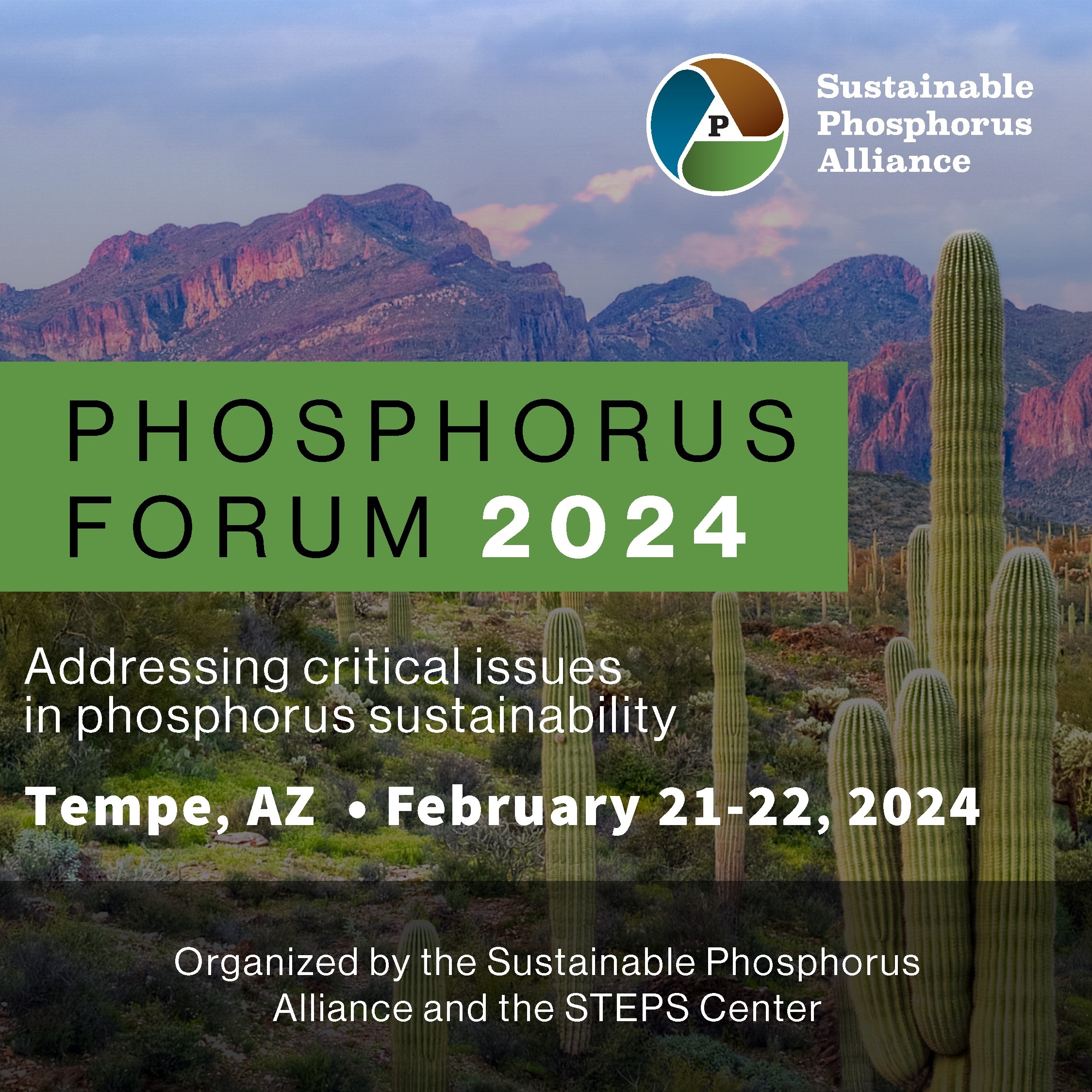 The 6th annual Phosphorus Forum, hosted by the Sustainable Phosphorus Alliance and the NSF-funded STEPS Center, is coming up on February 21 and 22 in Tempe, Arizona! Registration is available here: https://specialevents.asu.edu/pforum24
